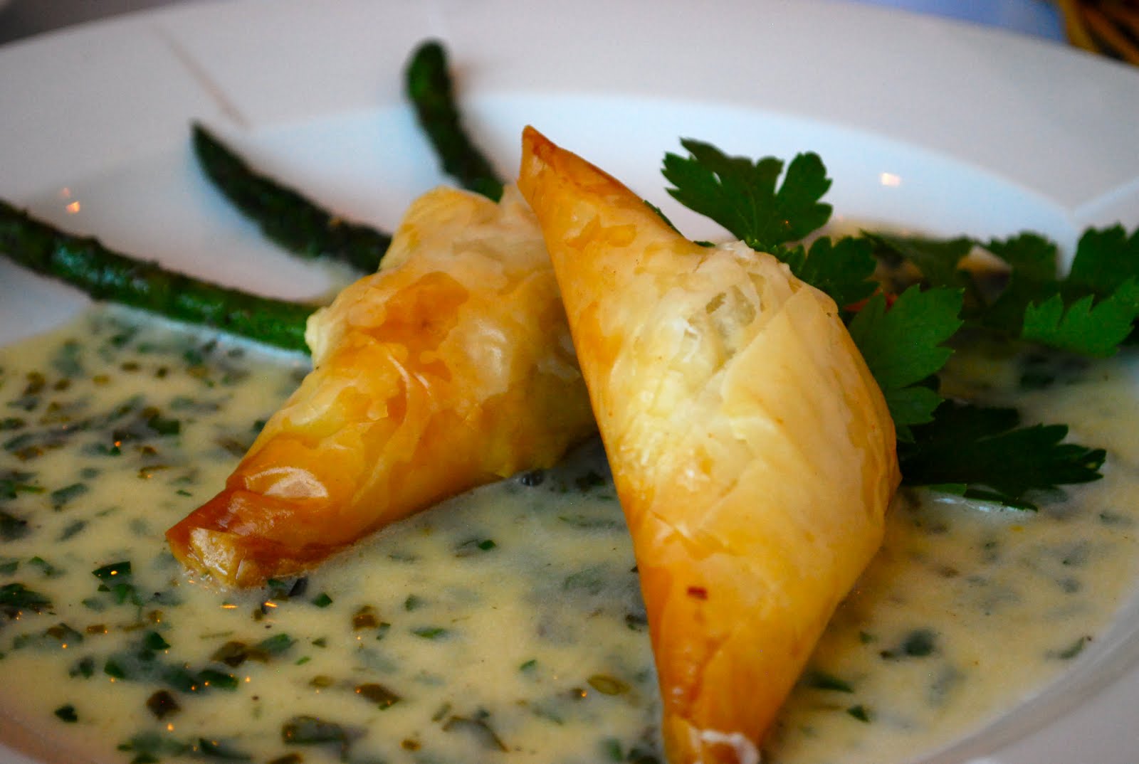 The third appetizer that landed with supreme grace on our table was the phyllo-wrapped scallop. I seriously don't know how it is done - cooking the scallop to perfection while it is nestled in an amazing blanket of creamed leeks and wrapped in gorgeously golden phyllo... I made a vow to never work with phyllo pastry again after an awful experience with it years ago and I have great respect for those who can manage this persnickety dough. This dish was absolutely lovely.